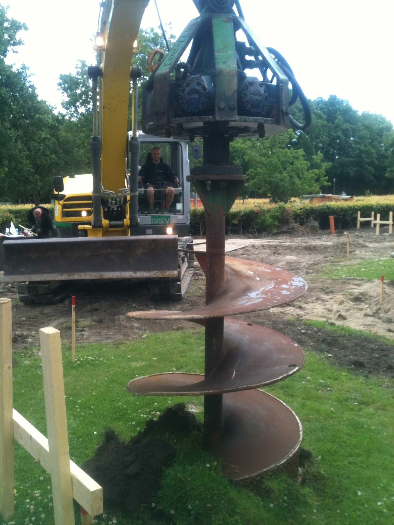 Fundamenterne udføres med et jordbor (sneglebor) monteret på en 12 – 22 tons gravemaskine.